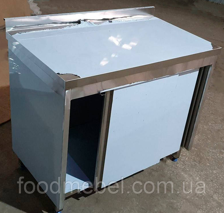 Стіл тумба з нержавіючої сталі з розпашними дверима або розсувними дверима купе (залежить від розміру конструкції) для кафе, ресторану, магазину, пекарні, піцерії та їдальні. Виробничі столи тумби використовуються в харчовій і торговельної галузі для оброблення продуктів та інших операцій на підприємствах громадського харчування, а також в медичних організаціях.