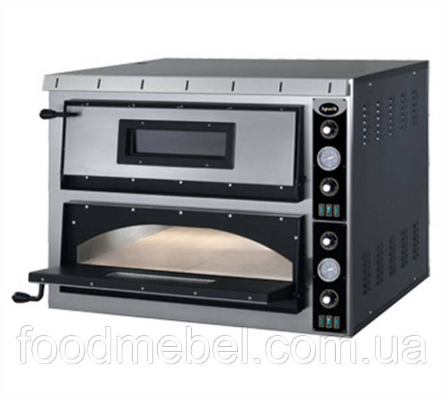 Піч для піци Apach АML 44 професійна двокамерна з кам'яним подом. Дно печі викладено спеціальними кам'яними плитами, які підтримують високу температуру в камері впродовж тривалого часу, вони зручно дістаються й чистяться.